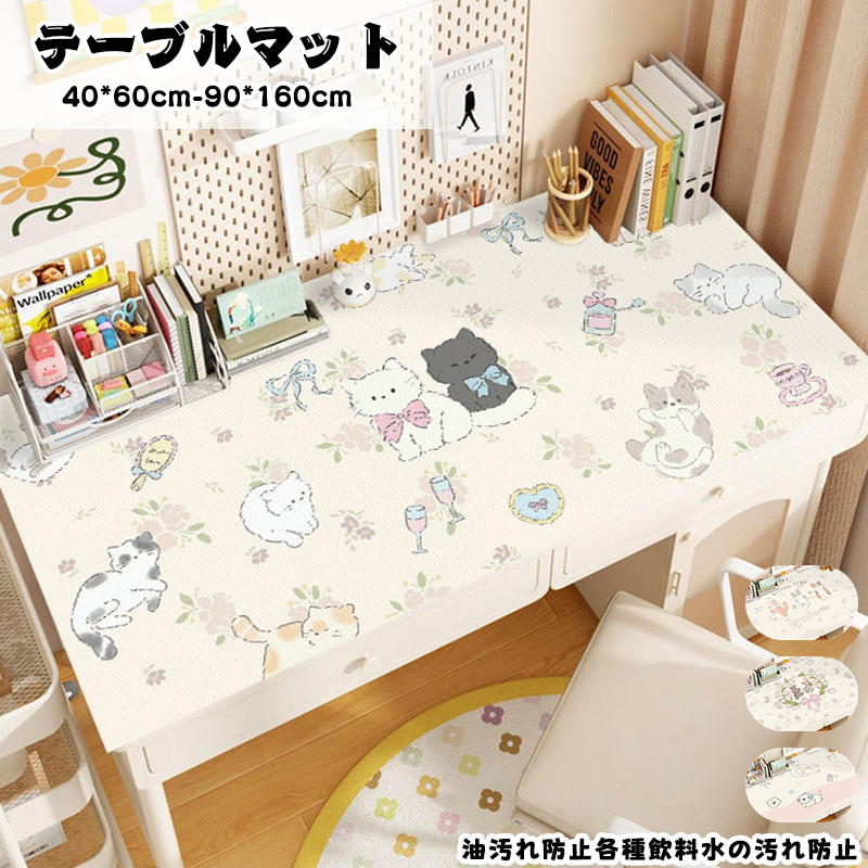 デスクマット 大型 防水防滑 汚れから守ってくれ 無地 滑り止め付き テレワーク 子供 学習机 勉強 四季通用 お手入れ簡単 防油 耐久 白 ピンク 猫模様 動物柄 かわいい ピンク 白