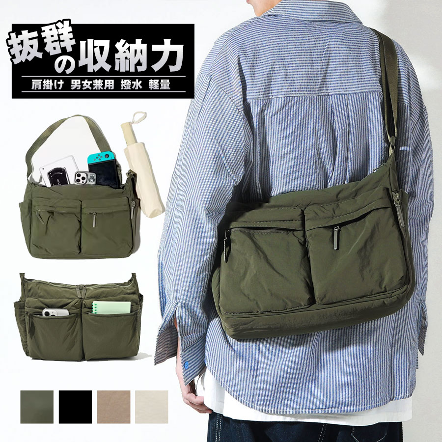 ショルダーバッグ メンズ レディース バッグ 多収納 斜めがけ 防水撥水 多ポケット 肩掛け 軽量 ボディバッグ 大容量 通勤 通学 おしゃれ