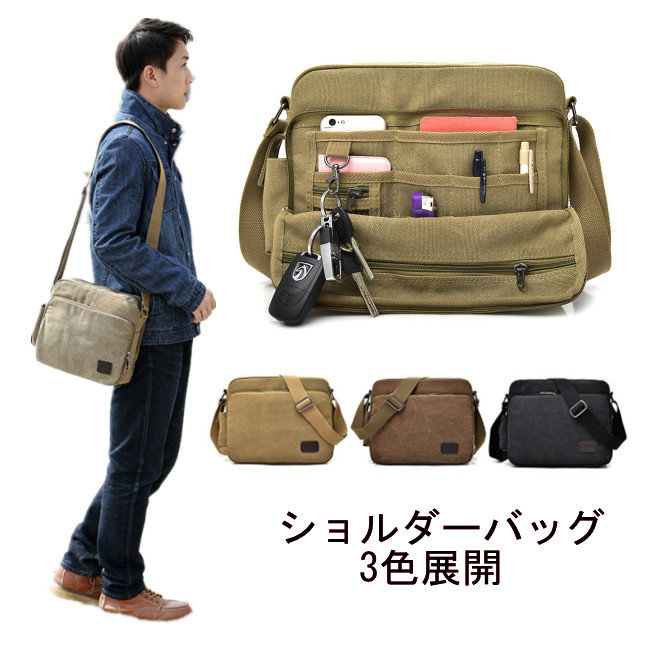 ショルダーバッグ メンズバック ショルダー キャンバス 大容量 おしゃれ メンズバッグ ファスナー付