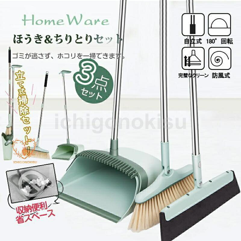 ほうき ちりとりセット 立て式掃除セット そうじ チリトリ ホウキ 箒 ちり取り 塵取り室内用 屋外 部屋 フローリング 玄関