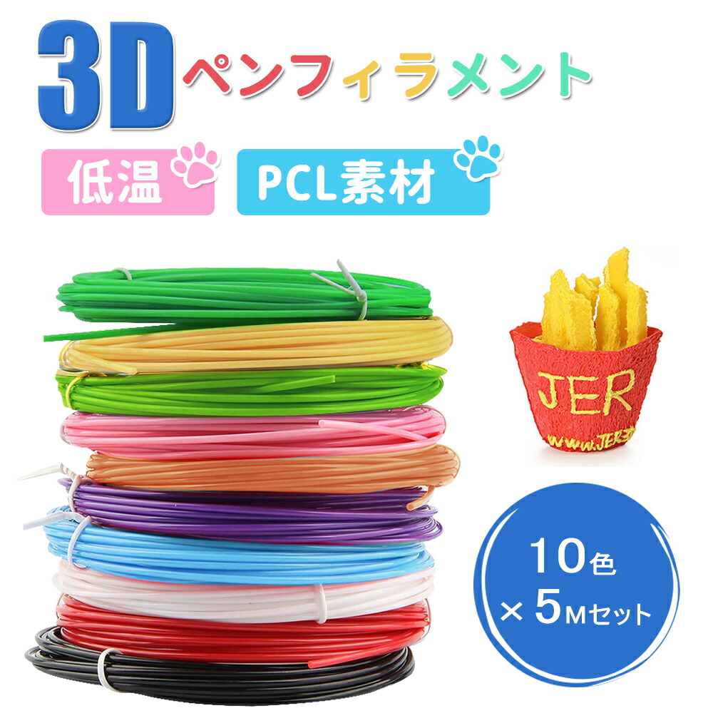 3Dペン 立体絵画 フィラメント PCL 5m×10色 3Dアートペン DIY 手作り 誕生日 プレゼント USB充電 掃除ピン 台座付 子供 低温 3dペン 手芸 肉球 3Dペンフィラメント セット