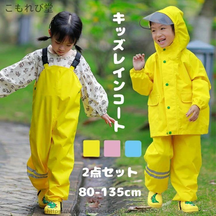 キッズ レインスーツ 子供 レインコート レインパンツ オーバーオール サロペット レインウェア 上下セット セパレート アウトドア 女の子 ランドセル対応
