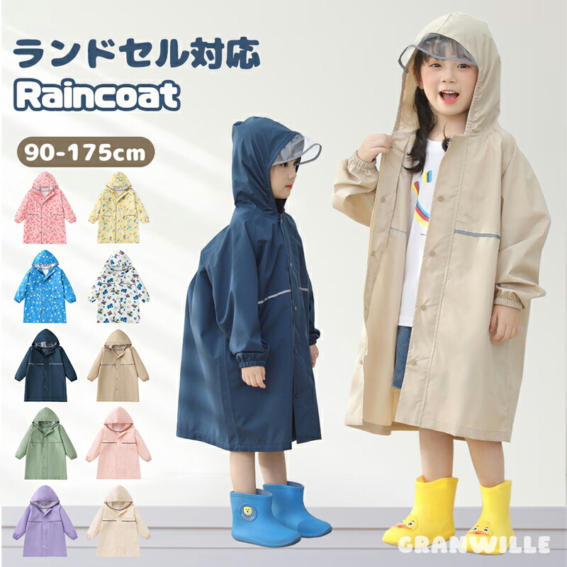 レインコート キッズ ランドセル対応 こども 男の子 女の子 雨具 透明窓 反射材 収納袋付き 軽量 超軽量 子供 子供用 かわいい 防水 撥水 ランドセル リュック ポンチョ レインウェア 入 対応