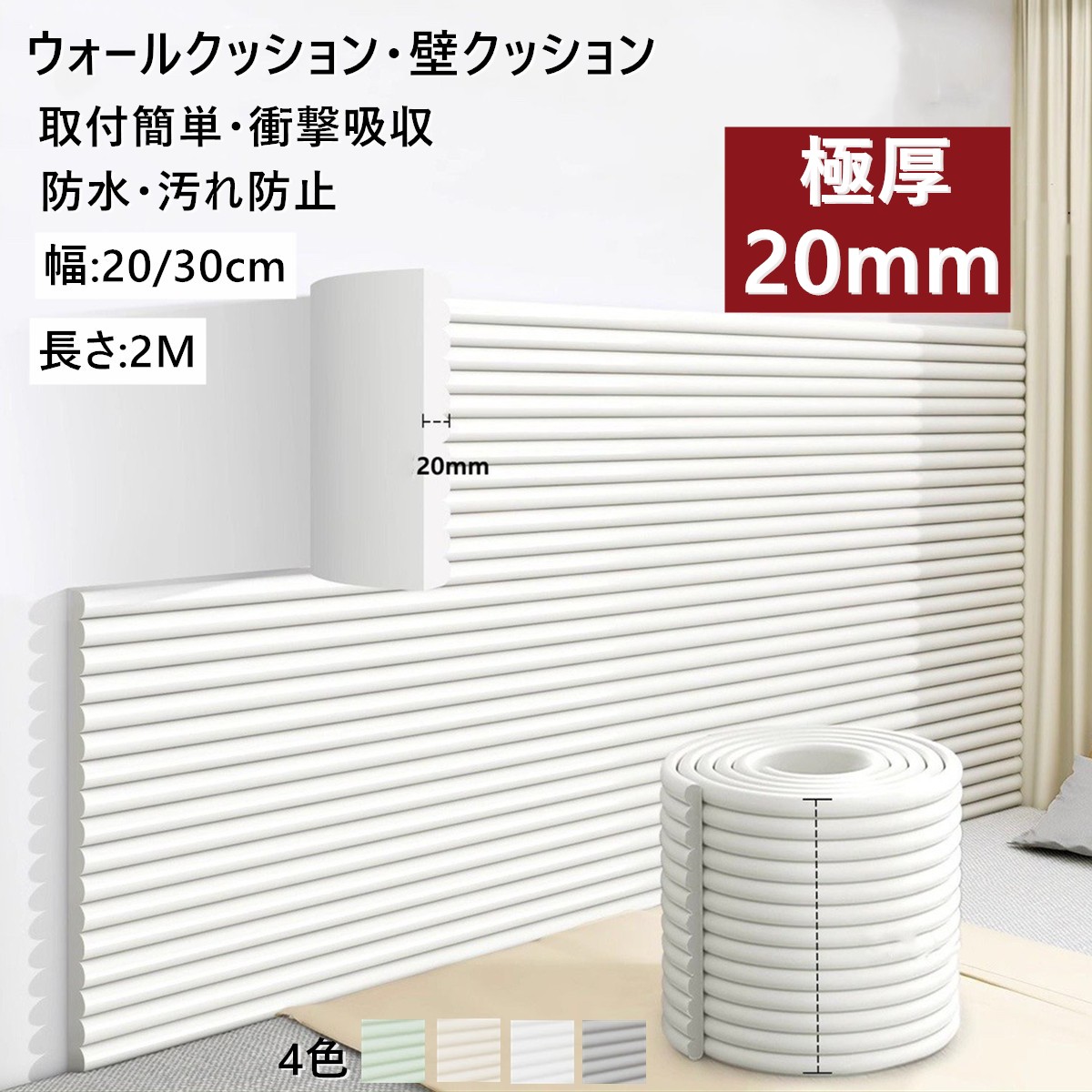 厚さ20mmコーナーガード コーナークッション ウォールクッション クッション 壁クッション マット ケガ防止 赤ちゃん 角ガード ベビーガード 衝撃吸収 ごっつん防止