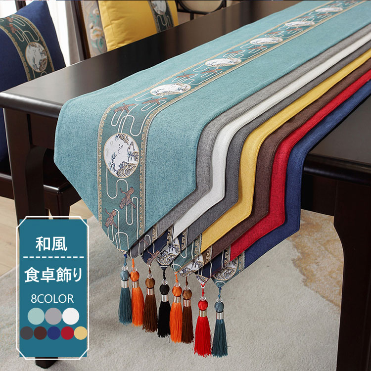 テーブルランナー おしゃれ 和風 テーブル小物 編み物 食卓飾り プレースマット 食事マット 防水 防汚 リネン 断熱 滑り止め 丸洗い タッセル付き テーブルカバー 上品 茶旗 ギフト インテリア