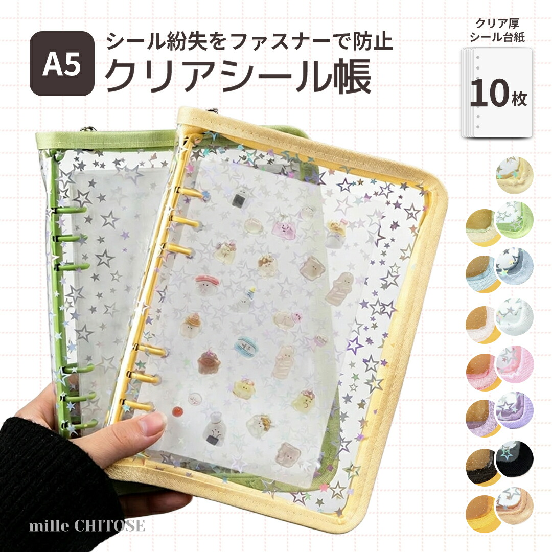 シール帳 シール帳セット シール紛失防止 ジッパー バインダー 透明 星 クリア シール台紙10枚 A5 シールバインダー シール はがせる シール手帳 台紙 6穴 男の子 大人向け クリアバ 女の子