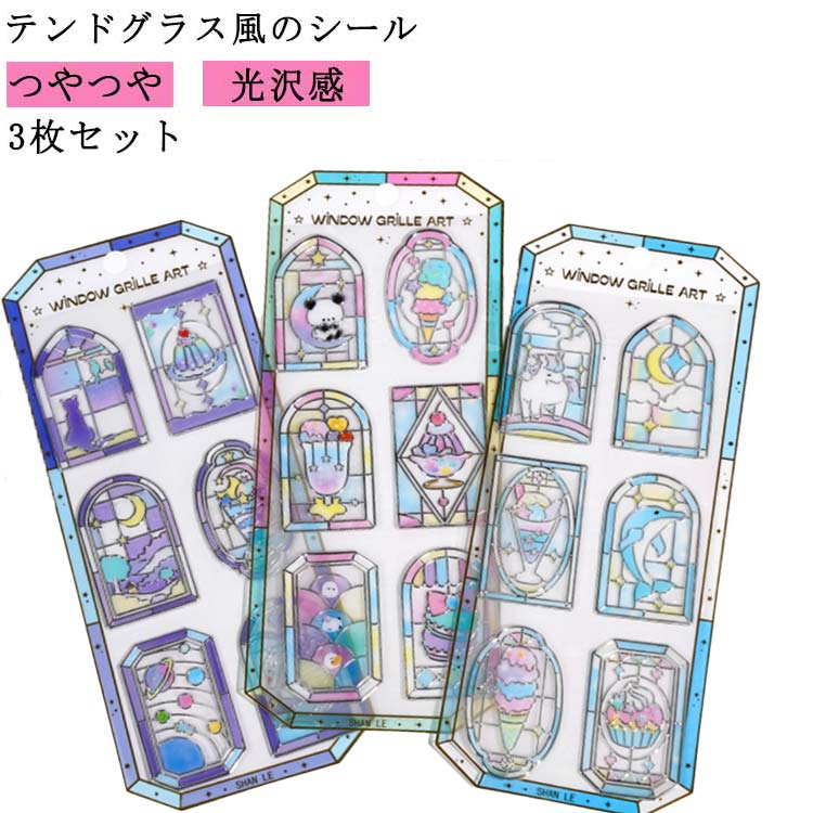 推し活 3枚セット 透明 立体感 おしゃれ ガラス かわいい パンダ 猫 喫茶店 食べ物 窓 カフェ ねこ シール交換 スマホケース レトロ ご褒美シール 光沢 シール グッズ つやつや