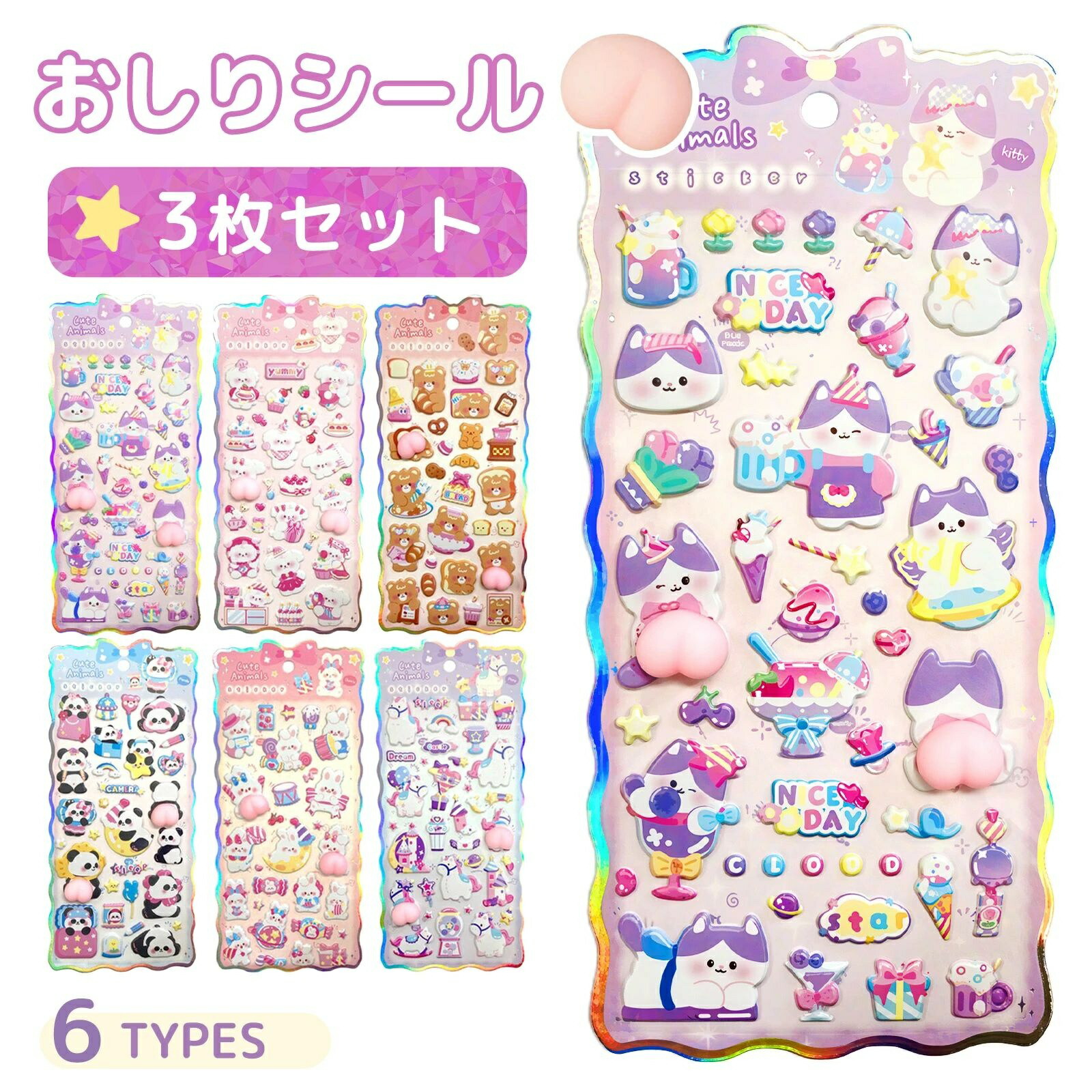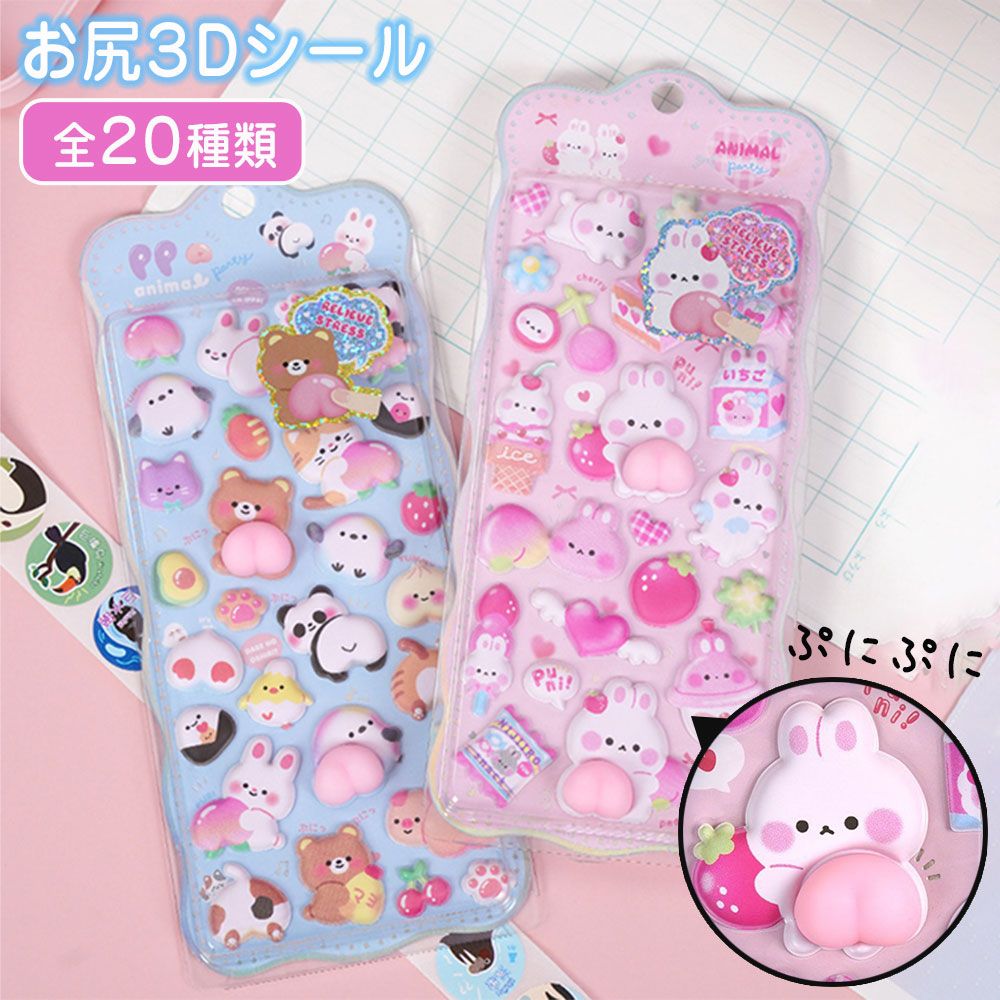 おしりぷにぷにシール 用 3 ふわふわ 動物 植物 可愛い 立体装飾用 誕生日 プレゼント 小学生 子供 キラキラ