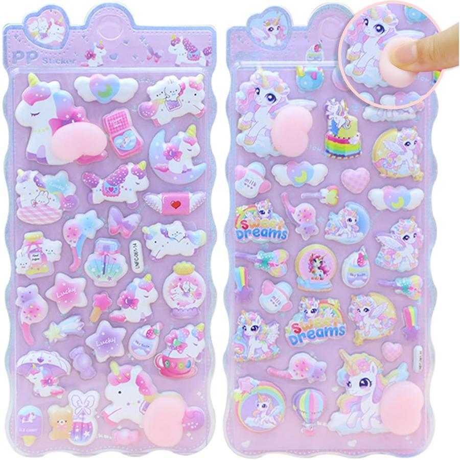 ぷくぷくシール 3Dシール 立体シール ぷくぷく 2枚 ユニコーン 可愛い 女の子 男の子 手帳用 ごほうび DIYクラフト用 おしりぷにぷにシール 日記帳用