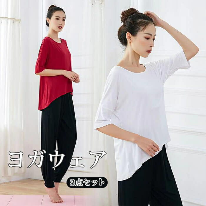 ヨガウェア 上下セット 体型カバー トップス ボトム 3点セット