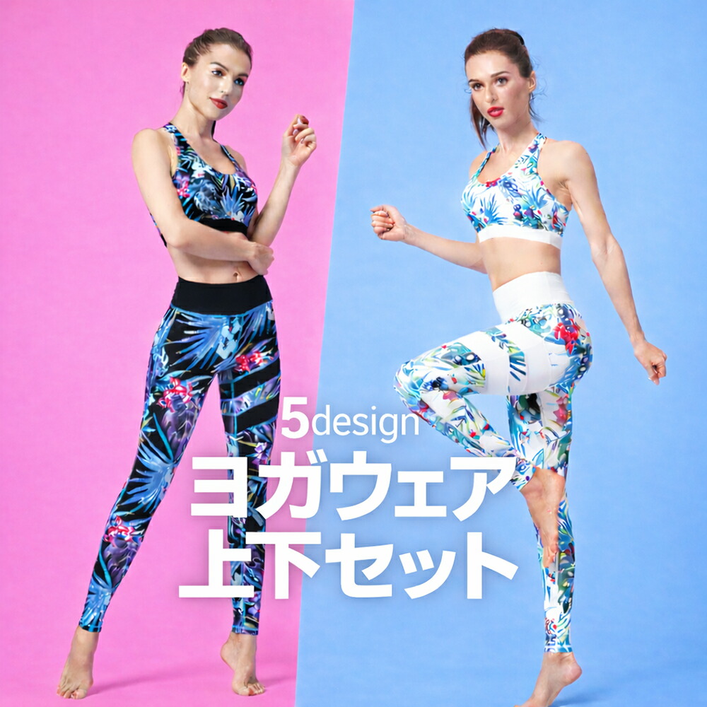 ヨガウェア 上下セット 体型カバー おしゃれ ホットヨガ 大きいサイズ 可愛い カップ付 ボタニカル柄 ヨガレギンス 5つのデザインご用意 スポーツブラ ピラティス 2点セ ヨガパンツ