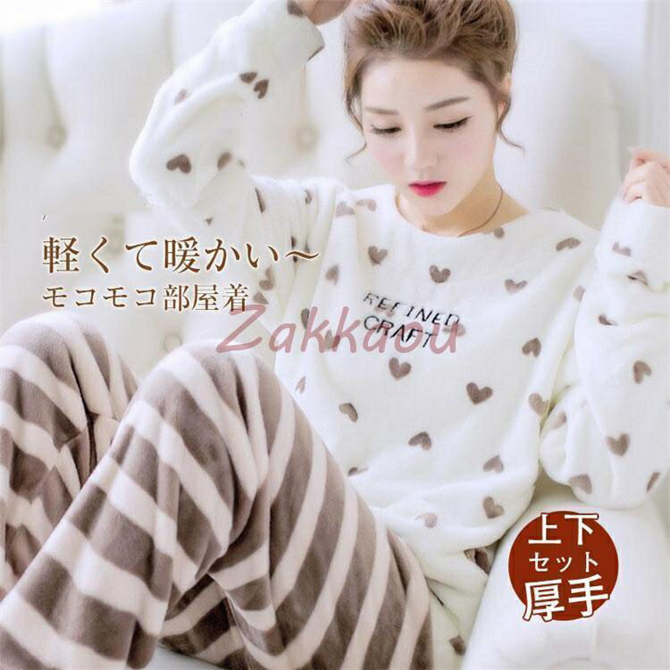 冬新作 冬パジャマ レディース 秋冬 ルームウェア 部屋着 寝巻き モコモコ 長袖 フランネル プレゼント 暖 可愛い 防寒 暖かい 上下セット