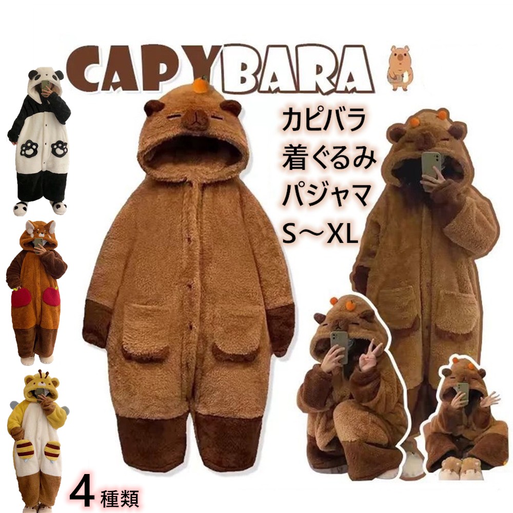 5種類 カピバラ柄 着る毛布 着ぐるみ パジャマ カピバラパジャマ ルームウエア ナイトガウン ふわふわ 上下セット パンダ柄 ミツバチ柄 男女兼用 部屋着 レディース 冬 寝間着 リラ 秋