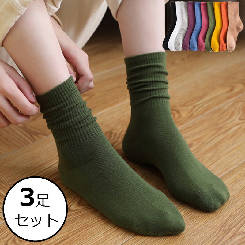 レディース 靴下 可愛い 3色組でハイソック 女性 女子 大人 春 夏 秋 冬 ソックス ショートソックス ミドル丈 綿 無地 おしゃれ かわいい コットン