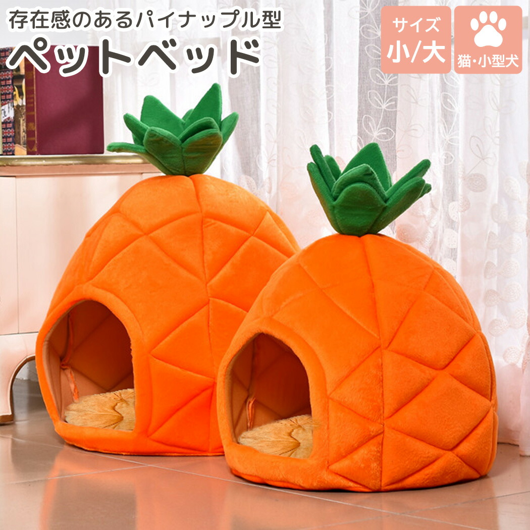 結構珍しい!?インパクトばっちりなパイナップルハウス♪ イヌ ネコ かわいい 犬ベッド 猫ベッド 秋 冬 キャットベッド ドッグベッド クッション 取り外し可 ドーム型ハウス