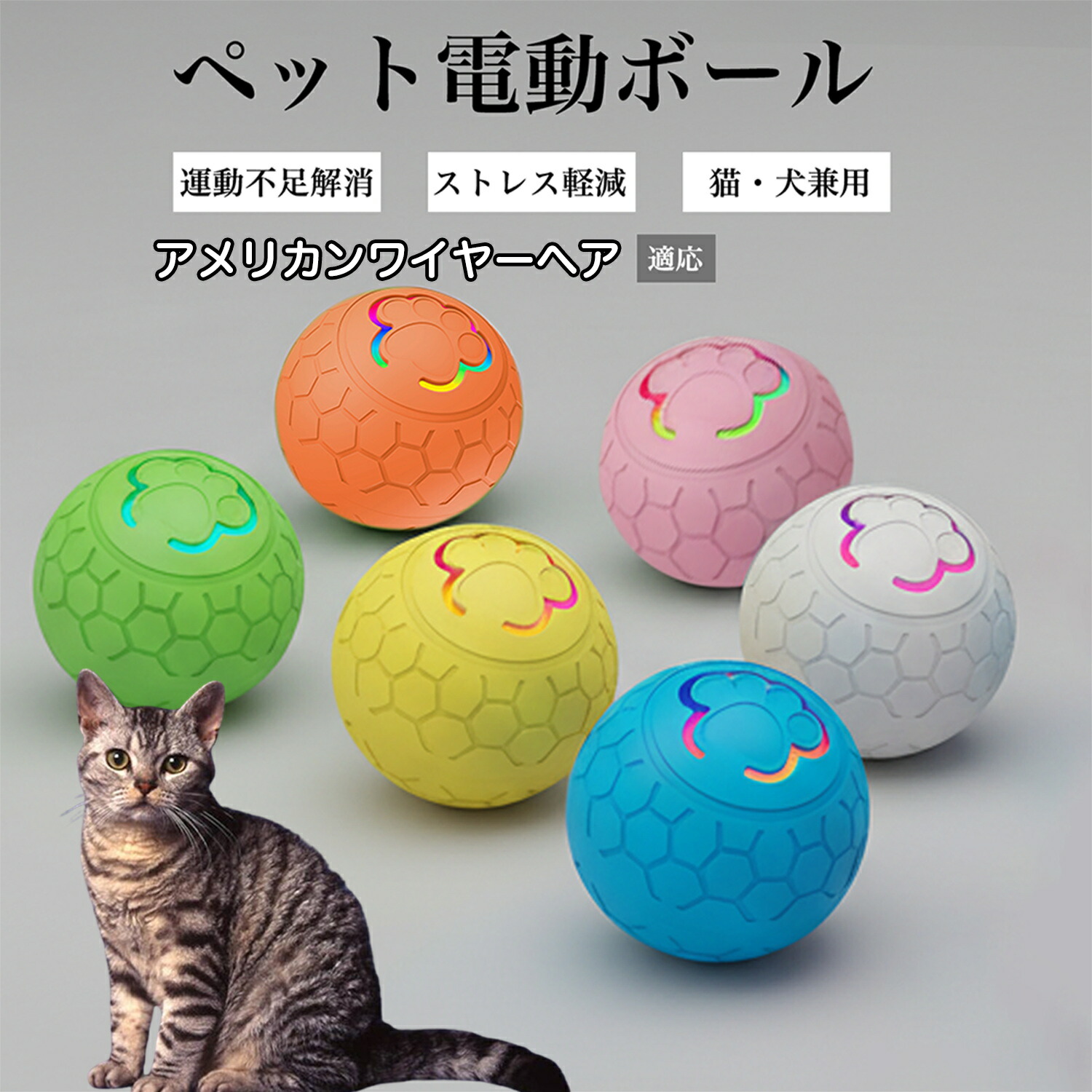 ペット用 電動 おもちゃ ボール 自動 回転 不規則 動作 光る USB 充電 Type-C 静音 設計 2モード 切替 犬 猫 対応 室内 遊び 用 アメリカンワイヤーヘア猫 アメワイ 留守番