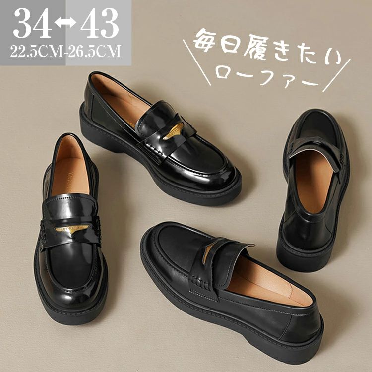 ローファー 学生 厚底 ヒール レディース ローファーシューズ 靴 痛くない ラウンドトゥ パンプス 黒 レザー調 シューズ カジュアルシューズ 高校生 歩きや 太ヒール