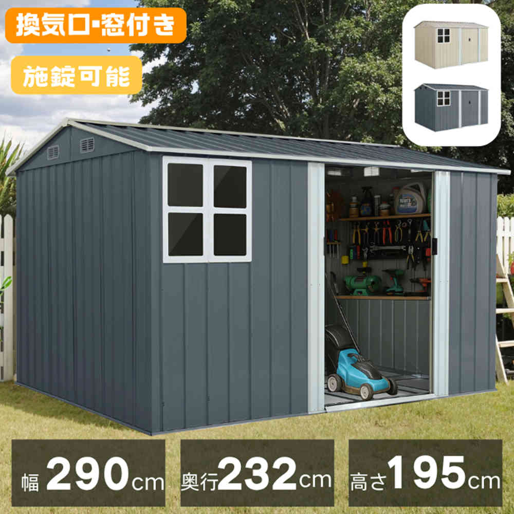 物置 屋外 スチール 倉庫 大型 窓付き 床材補強フレーム付き 戸外収納庫 幅290 奥行き232 高195 施錠可能 換気口 物置き 収納庫 屋外物置 大容量 ベランダ 防水 スチール物置 防さび