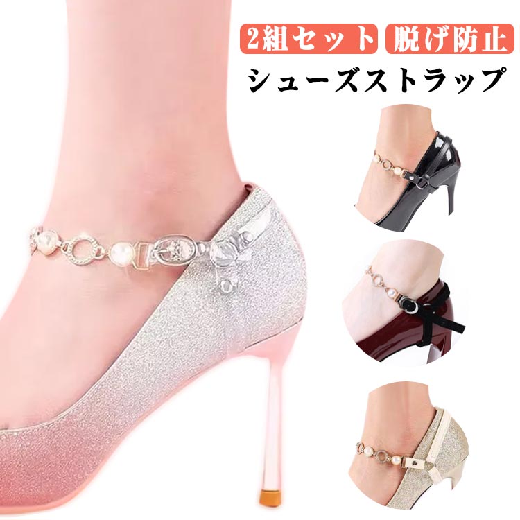シューズストラップ シューズバンド アクセサリー パンプスストラップ 2組セット シューズチェーン 脱げ防止 パンプスベルト おしゃれ