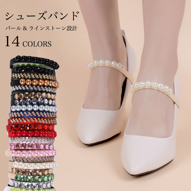 シューズストラップ お洒落 シューズバンド ストレッチ レディース シューズベルト ラインストーン パール パンプスベルト パンプスストラップ ゴム 脱げ防止 パンプス バンド 伸縮 ストラップ 靴