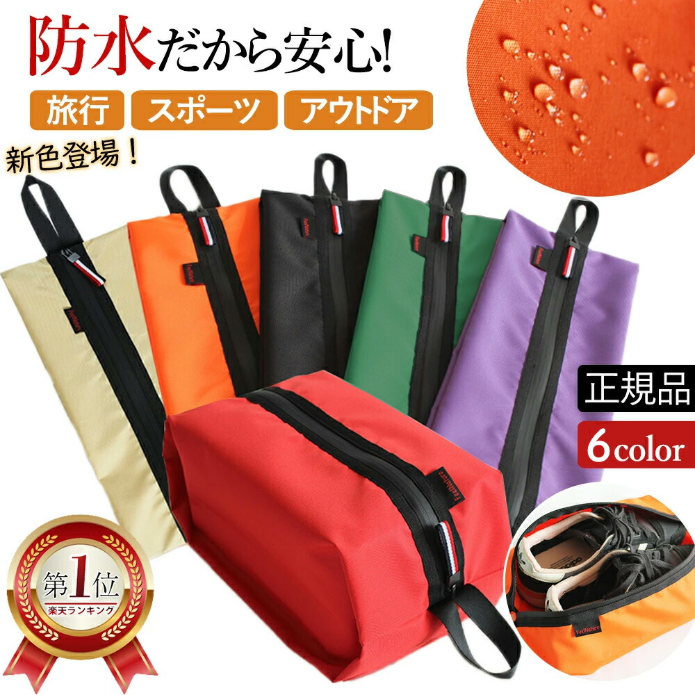 コンパクトに折りたためる 防水 シューズケース ファスナー 5色 袋 シューズバッグ シューズ入れ
