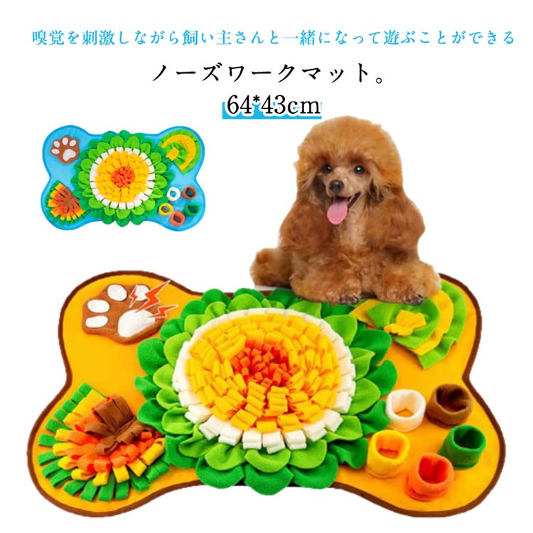 愛犬の嗅覚を刺激し、早食い防止とストレス解消に役立つ洗えるノーズワークマット。室内で安全に遊べます。