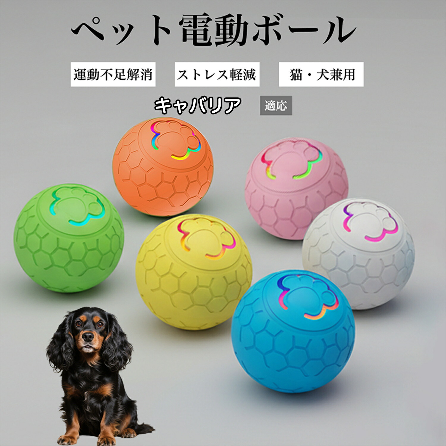 ペット用 電動 おもちゃ ボール 自動 回転 不規則 動作 光る USB 充電 Type-C 静音 設計 2モード 切替 犬 猫 対応 室内 留守番 用 キャバリアキングチャールズスパニエル犬 遊び