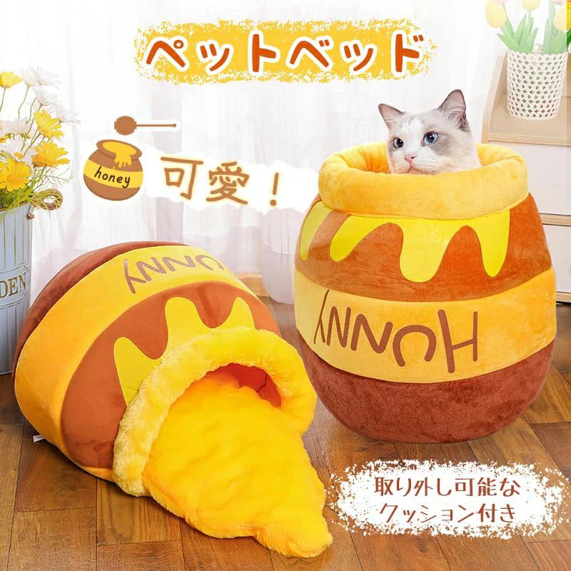 猫ベッド こぼれハチミツ壺型 ねこ ハウス 冬 猫のベッド 洗える
