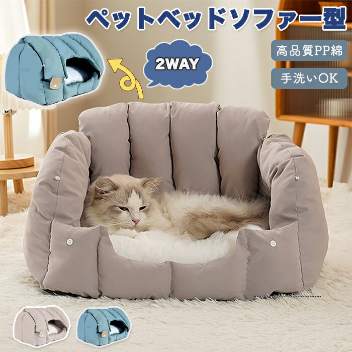 ペットベッド ソファー型 ソファベッド ソファーベッド ペットソファー 2way ドーム型 猫ベッド 冬 犬ベッド ペットハウス 洗える 2WAY 両用ベット 犬猫兼用 キャット クッション外す可能
