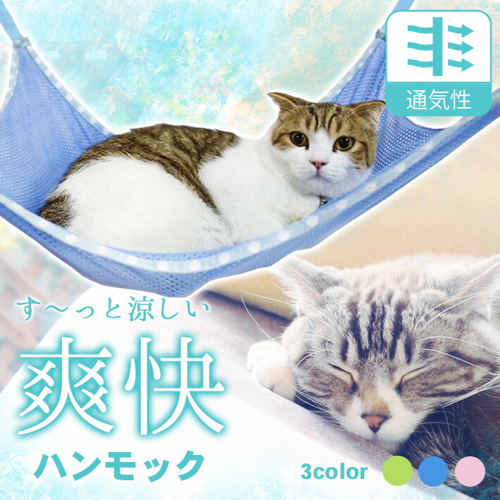 ペット ハンモック 夏用 メッシュタイプ 通気性抜群 猫 寝床 春夏 約52cm×約36cm 吊り下げベッド
