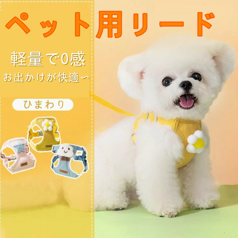 小型犬 ハーネス リードセット 子犬 ペット用 胴輪 通気性 軽量 簡単装着 脱走防止 散歩 お出かけ トイプードル ビション ポメラニアン メッシュ 可愛いデザイン 胸当て付き サイズ調整