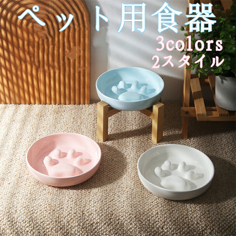 犬用食器 猫用食器 早食い防止食器 フードボウル 早食い防止 セラミック 小型犬 中型犬 首保護 木製スタンド 転倒防止 健康促進 ペット用品 かわいい 肉球デザイン 食器台 ご飯皿