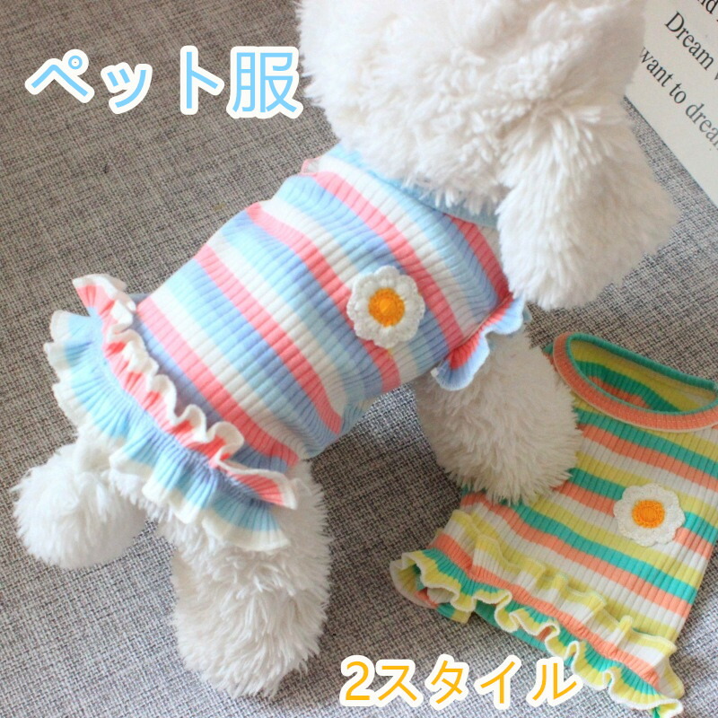 犬服 猫服 小型犬 タンクトップ ボーダー 袖無しシャツ 涼しい フリル 花柄 ペットウェア 可愛い おしゃれ 室内着 散歩 ドッグラン ルームウェア