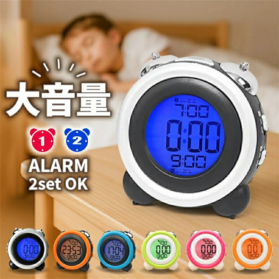 目覚まし 時計 子供 大音量 アラーム2セット デジタル ライト置き時計 子供部屋 スヌーズ機能付き ダブルアラーム 二度寝防止 男子 女子 静音