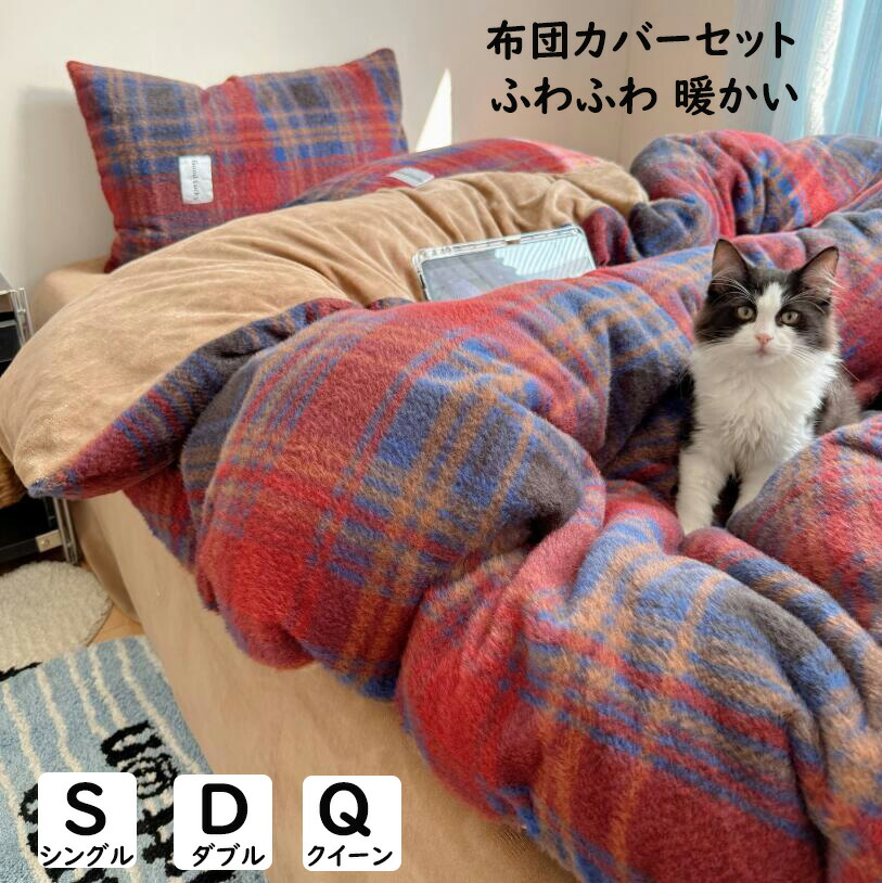 布団カバーセット チェック柄 秋冬 厚手 ふわふわ 暖かい シングル ダブル クイーン フランネル 柔らか 掛ふとんカバー 3 4点セット ボックスシーツ 掛け布団カバー 枕カバー 静 フラットシーツ