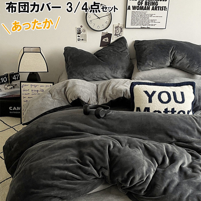 掛けカバー 布団カバー フランネル マイクロファイバー あったか 掛け布団カバー 3、4点セット シングル 暖かセミダブル