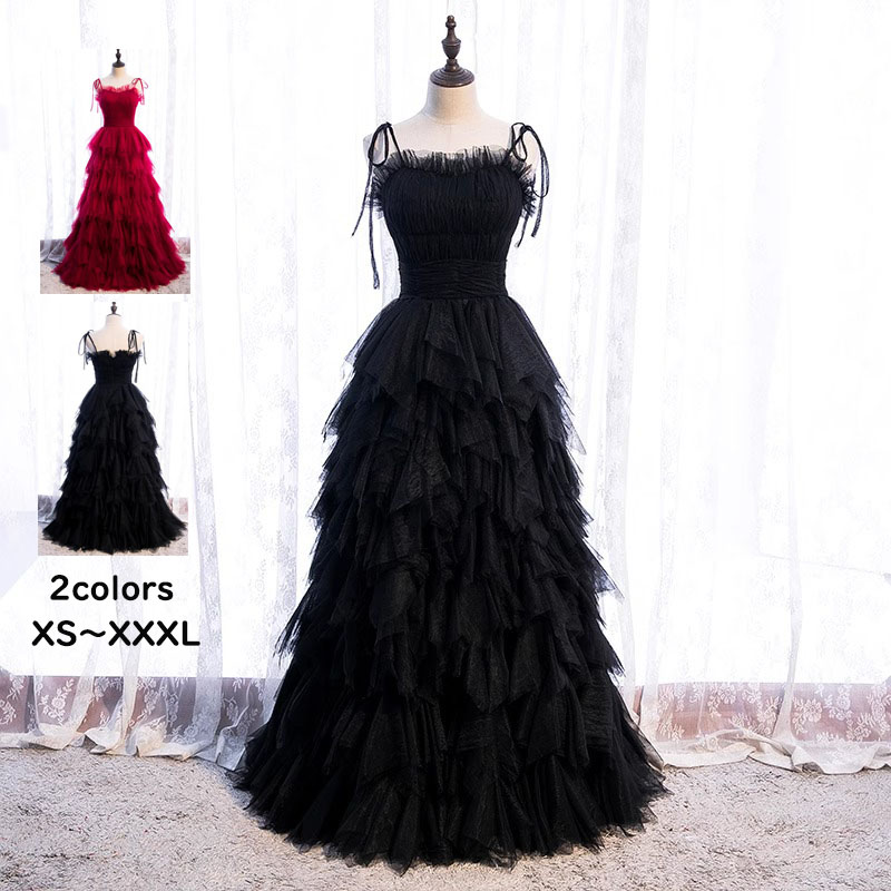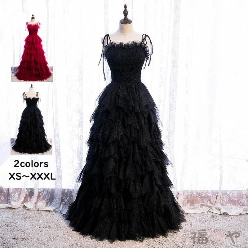 ウェディングドレス パーティードレス キャミソールドレス 黒ドレス ブラックチュール ふわふわスカート 結婚式 前撮り 誕生日 演奏会ドレス 花嫁ドレス ロングドレス きれいめ 二次 ピアノファスナー