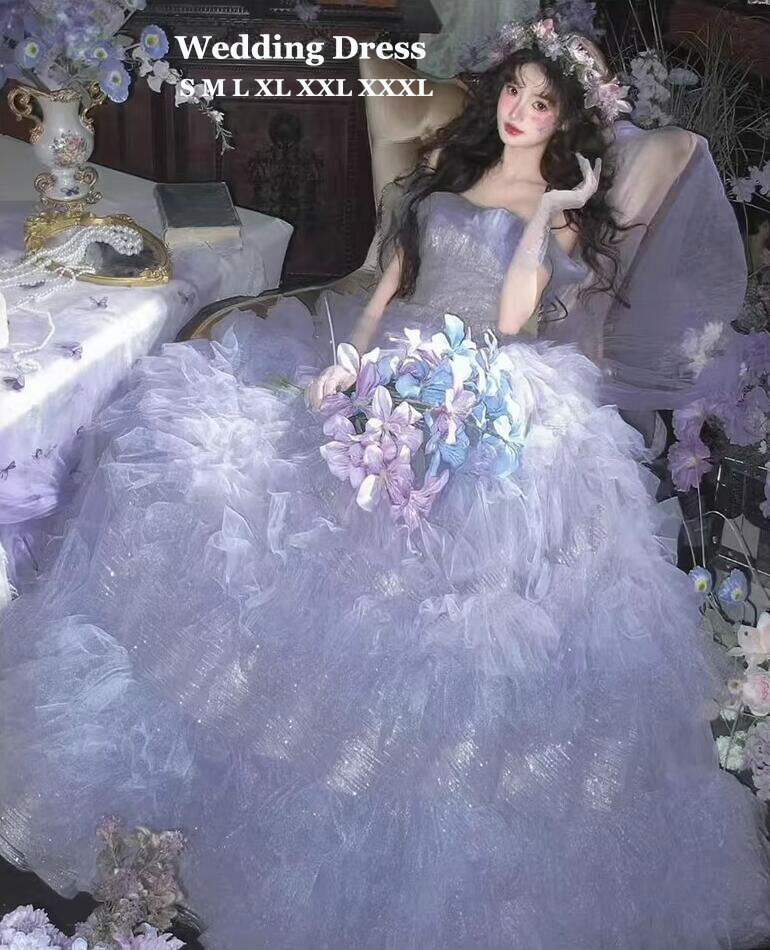 ウェディングドレス お姫様 パープル 紫 チュール ふわふわスカート オフショルダー 高級感 結婚式 前撮り 花嫁ドレス カラードレス 誕生日 フォトウェディング撮影 ロングドレス パーティー 演奏会