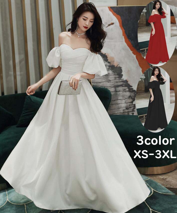 ウェディングドレス お花嫁ドレス オフショルダー ブライダル 白ドレス スレンダー 優雅 パーティードレス 前撮り 結婚式 黒ドレス 編み上げ 海外挙式 ロング丈 披露宴 二次会 演奏会 ミモレ丈