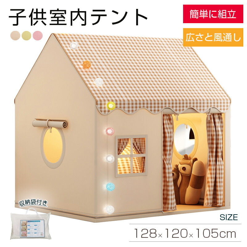 キッズテント 子供テント 室内遊具 屋根付き 室内ハウス お庭で遊園地気分 秘密基地 ゲームハウス イエロー ピンク カーキ