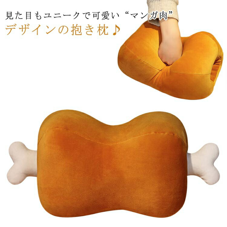 マンガ肉 可愛い ぬいぐるみ おもちゃ 添い寝 抱き枕 うつ伏せ寝枕 骨付き ネックピロー ふわふわ クッション もちもち 男の子 女の子 オフィス デスク うつ伏せ枕 子供用 キッ 昼寝枕