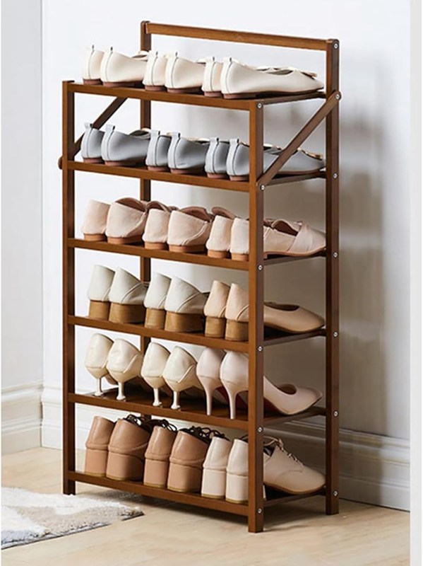 シューズラック 下駄箱 省スペース 竹製 靴収納棚 靴だな 靴箱 シューズ 靴収納 折りたたみ 組立不要 シューズラックスリム 玄関収納 廊下 玄関 部屋 屋外 アパート用ブラウン 6段(50x 屋内