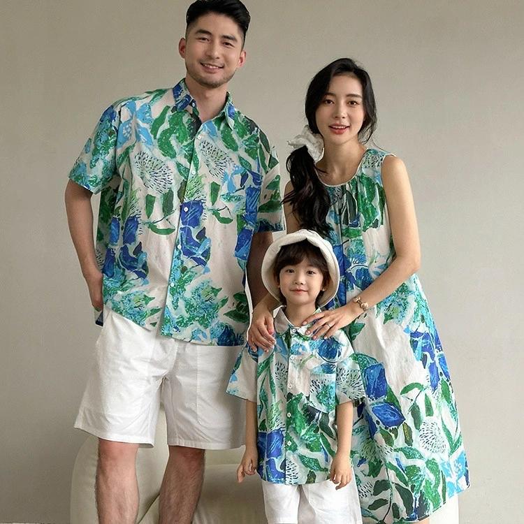 親子 ペアルック 親子コーデ 家族お揃い 親子ペアルック ワンピース 親子お揃い 親子ペア 男の子女の子 シャツ シャツワンピース ママパパ お揃い 旅行 記念撮影 リゾート家族 カップル