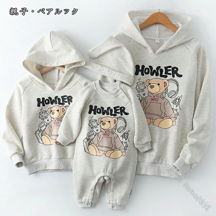 親子 ペアルック クマちゃん トレーナー ロンパース 赤ちゃん 男の子 女の子 パパ ママ 娘 息子 出産祝い プレゼント ギフト 誕生日 リンクコーデ 親子ペア ペア カップル 双子 コーデ セット