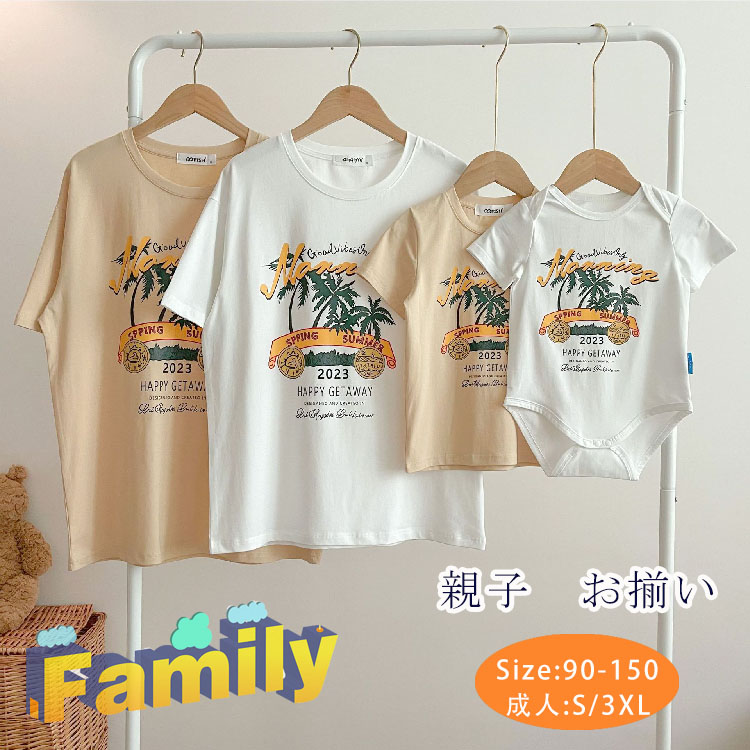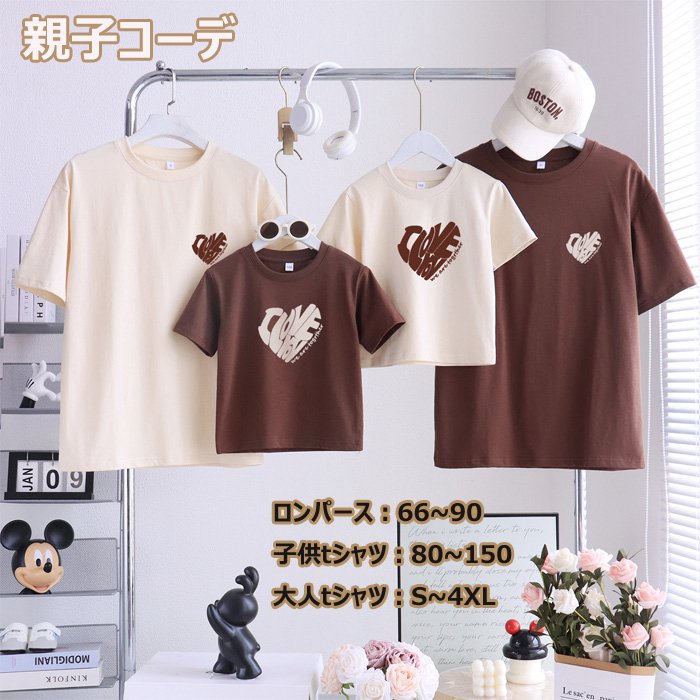 親子お揃い Tシャツ 親子 ペアtシャツ 親子コーデ 夏 親子ペア tシャツ 半袖 ロンパース リンクコーデ ベビー キッズ 子供 赤ちゃん トップス お揃い 夏服 親子ペアルック おしゃれ コーデ