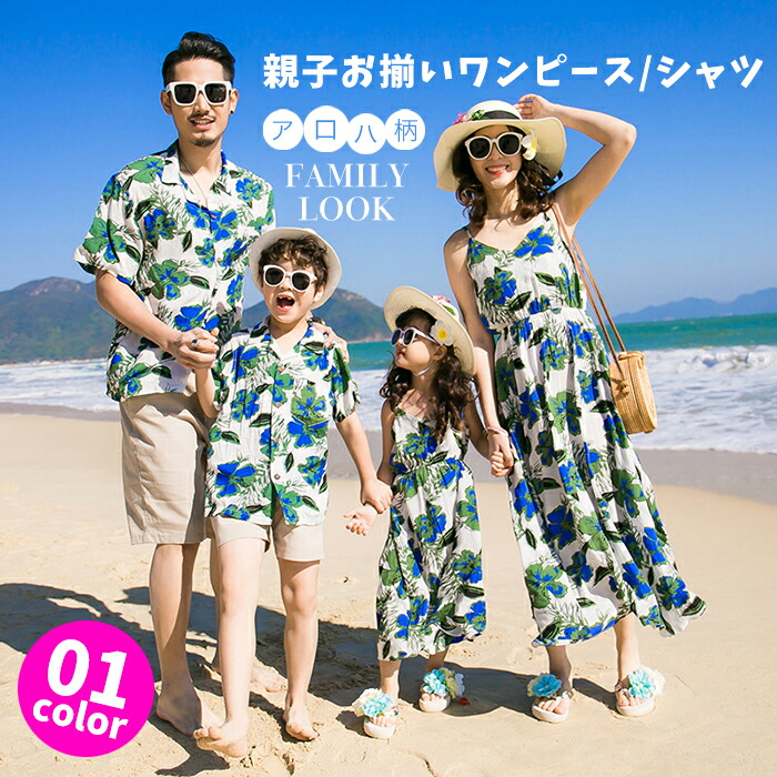 親子お揃い 親子コーデ リンクコーデ 親子 ペアルック お揃い コーデ 親子ペア ワンピース ママ レディース 女の子 花柄 アロハシャツ リゾート ハワイ ビーチワンピース メンズ 男の子 キ パパ