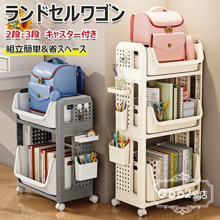 ランドセルラック ファイルラック 2段 3段 おしゃれ ランドセルワゴン ファイルワゴン 棚 移動 小物収納 文房具収納 書類収納ワゴン 引き出し キャスター付き 収納ボックス 学生収納ラック
