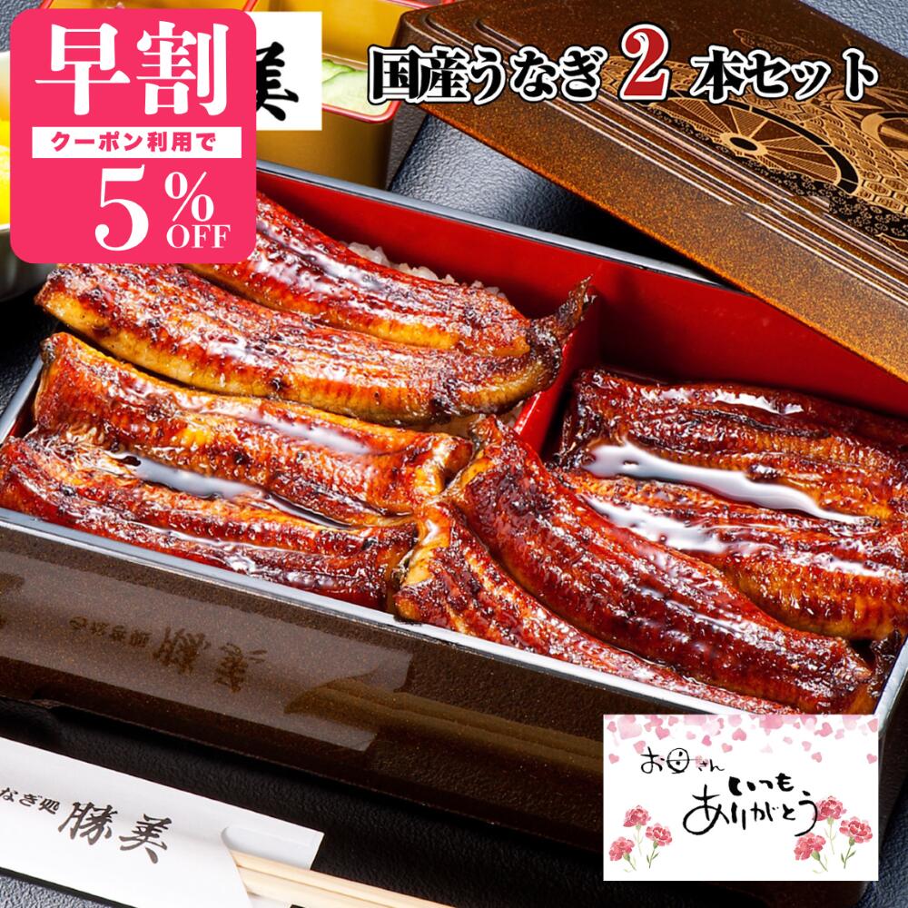 [今トク!超早割 2026年母の日は5/10(日)]湯煎レンジで温めるだけでふっくら 国産うなぎ専門店 勝美 こだわりウナギ蒲焼き170×2本セット (タレ山椒付) たれ無添加 オリジナル化粧箱入
