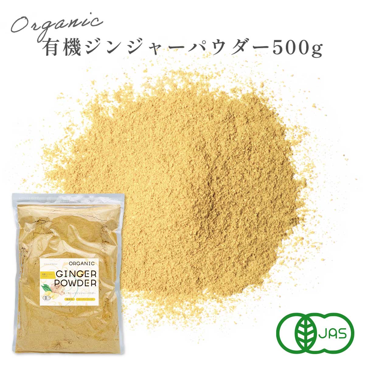ジンジャー パウダー 500g 有機JAS認証 ベトナム産 オーガニック 生姜 粉末 ショウガ 有機 無添加 無着色 砂糖不使用 Grace of Nature スーパーフード