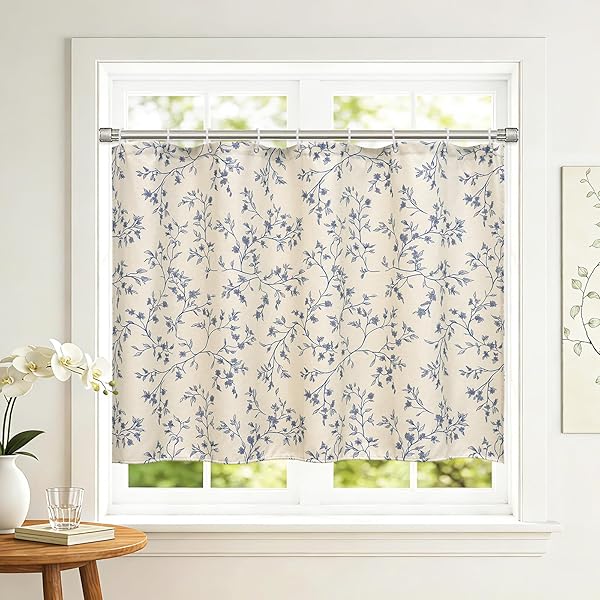 浴室窓カーテン 70cm丈 レース 小窓用 麻風 葉柄 カフェカーテン レースカーテン 透けない 1枚